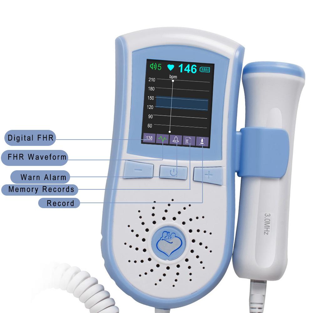 Our fetal Doppler is a hand-held and pocket fetal heart rate monitor. It can detect and listen to the fetal heartbeat,and then review and share tracking records via APP.(the free APP"Carejoy'' can download from Apple Store)